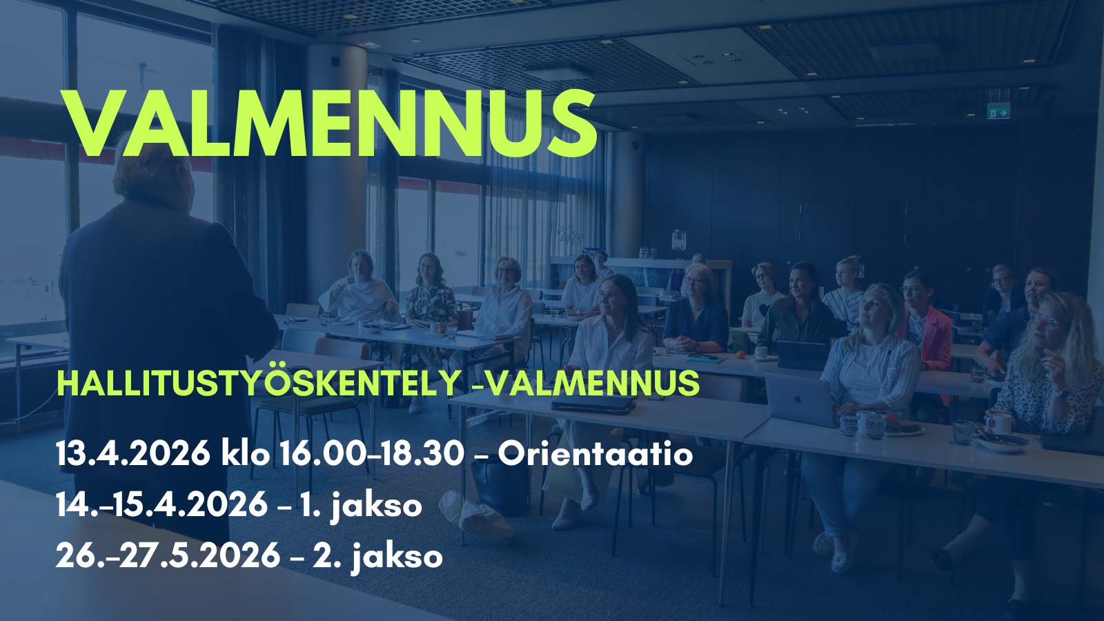 Valmennus ei vaadi HHJ:tä tai aikaisempaa kokemusta hallitustyöstä.